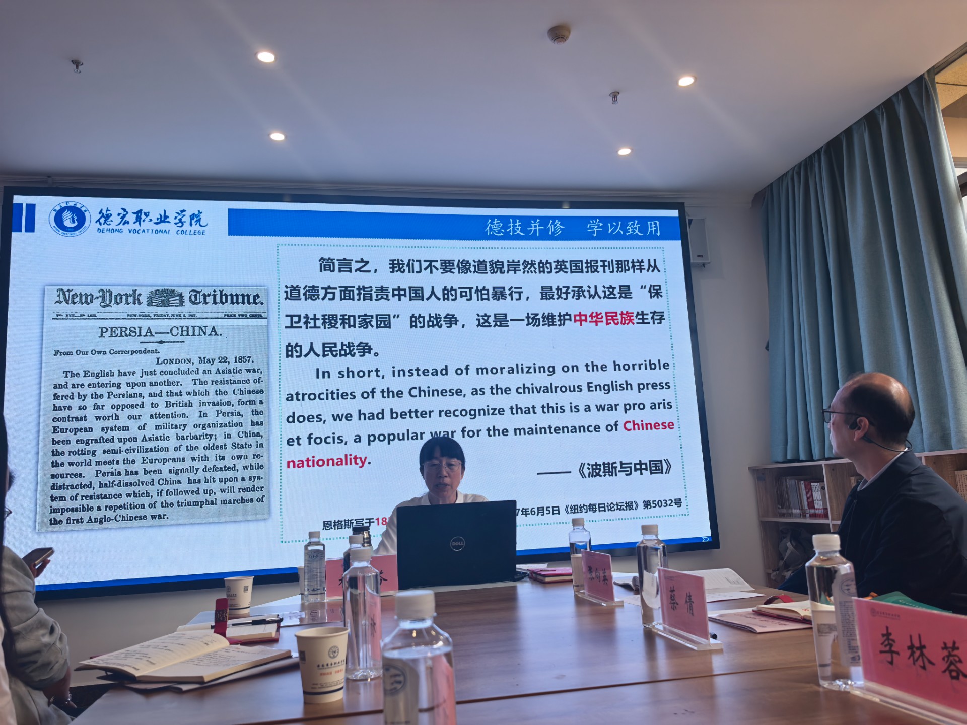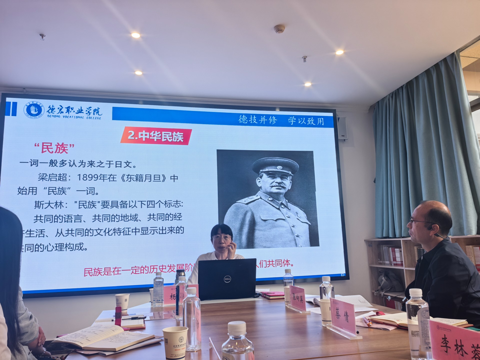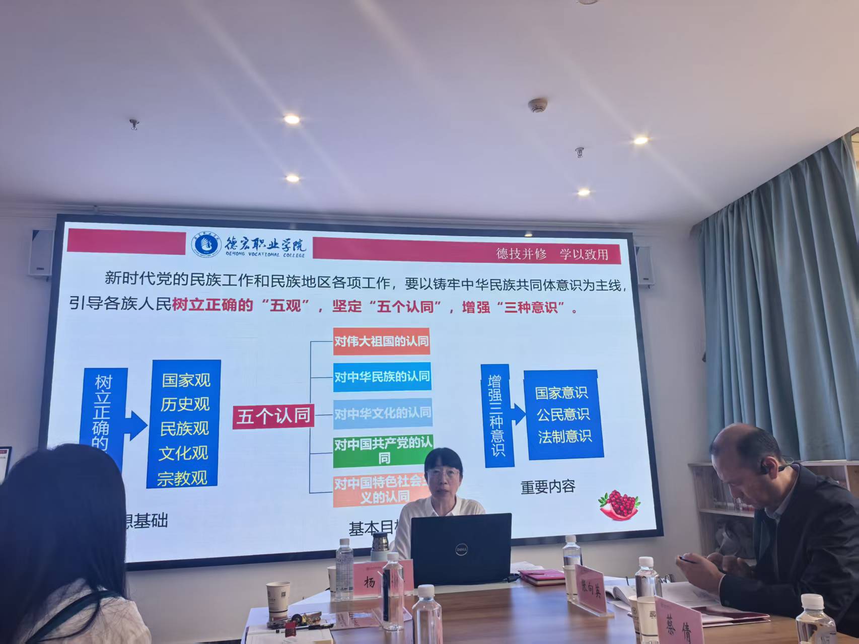 随后,会议聚焦职业教育在服务国家战略中的独特作用,邀请德宏职业学院党委副书记杨菊芬同志举办了“牢记嘱托推动职业教育赋能中华民族共同体建设”专题讲座。紧密结合云南多民族聚居的省情特点与学院京东电商专业的办学特色,深入阐述了职业教育在促进各民族交往交流交融、巩固脱贫攻坚成果同乡村振兴有效衔接、培养适应新时代要求的技术技能人才等方面的重要意义。会议强调,要立足职业教育类型定位,将铸牢中华民族共同体意识教育有机融入专业课程教学、实习实训、校园文化建设各环节,教育引导青年学生牢固树立休戚与共、荣辱与共、生死与共、命运与共的共同体理念。
