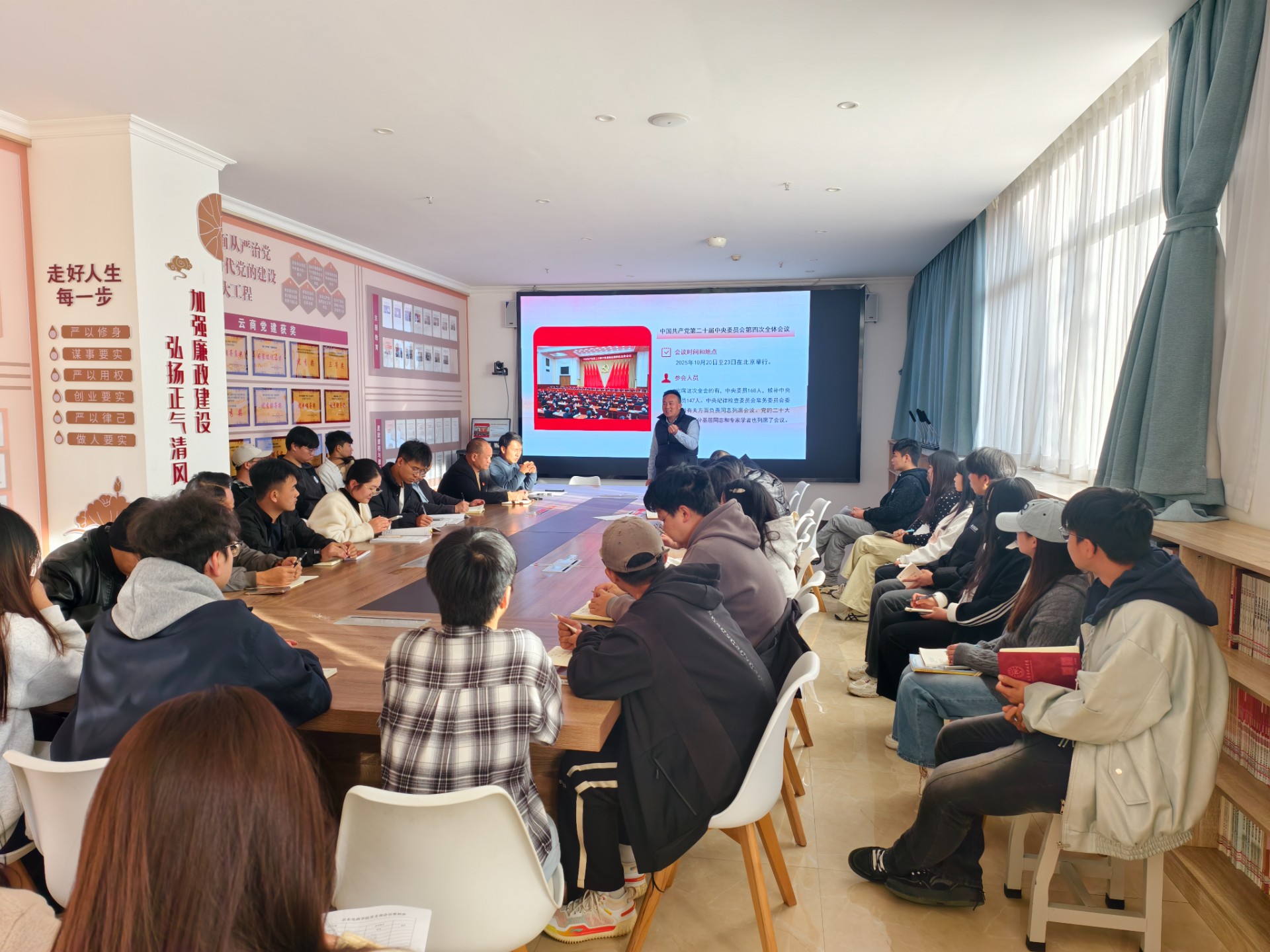 随后,云南商务学院党支部副书记郭新阳同志会议围绕党的二十届四中全会精神进行了深入学习和解读。大家认识到,党的二十届四中全会就一系列关系国家治理体系和治理能力现代化的重大问题作出了战略部署,对于坚持和完善中国特色社会主义制度、推进国家治理体系和治理能力现代化具有里程碑意义。会议重点学习了全会关于中国特色社会主义法治体系建设的部署要求,强调要将学习贯彻全会精神与支部实际工作紧密结合。