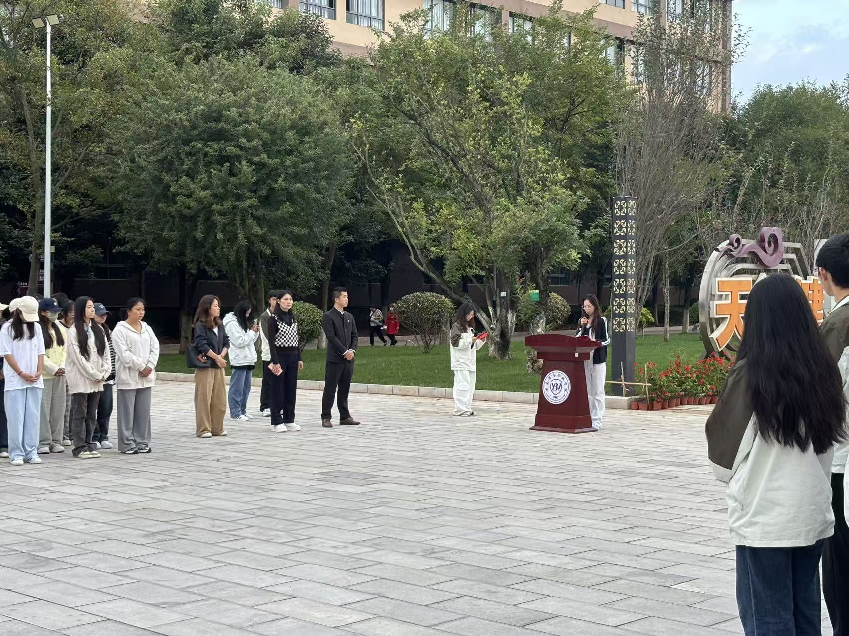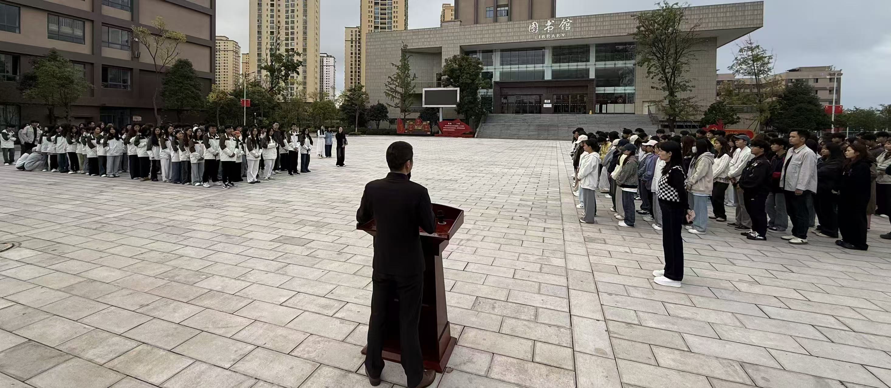 同时,吕加威副院长围绕十月“国际减灾宣传月”,进一步阐释了安全的重要意义。他指出,安全是生命的底线、幸福的基石,从地震、洪水等自然灾害防范,到守护粮食安全的“耕地红线”、捍卫科技安全的“芯片攻关”,再到防范网络诈骗的“信息防线”、保护文化遗产的“精神堡垒”,国家安全已融入生活方方面面。他向师生提出三点殷切期望:一是铭记历史、珍惜和平,筑牢“国家兴亡,匹夫有责”的坚定信念;二是立足课堂、勤学善思,以扎实的知识储备为未来守护国家科技安全积蓄力量;三是严守规范、重视细节,在课间及日常活动中践行“安全无小事”的责任担当,将爱国情、强国志转化为具体行动。