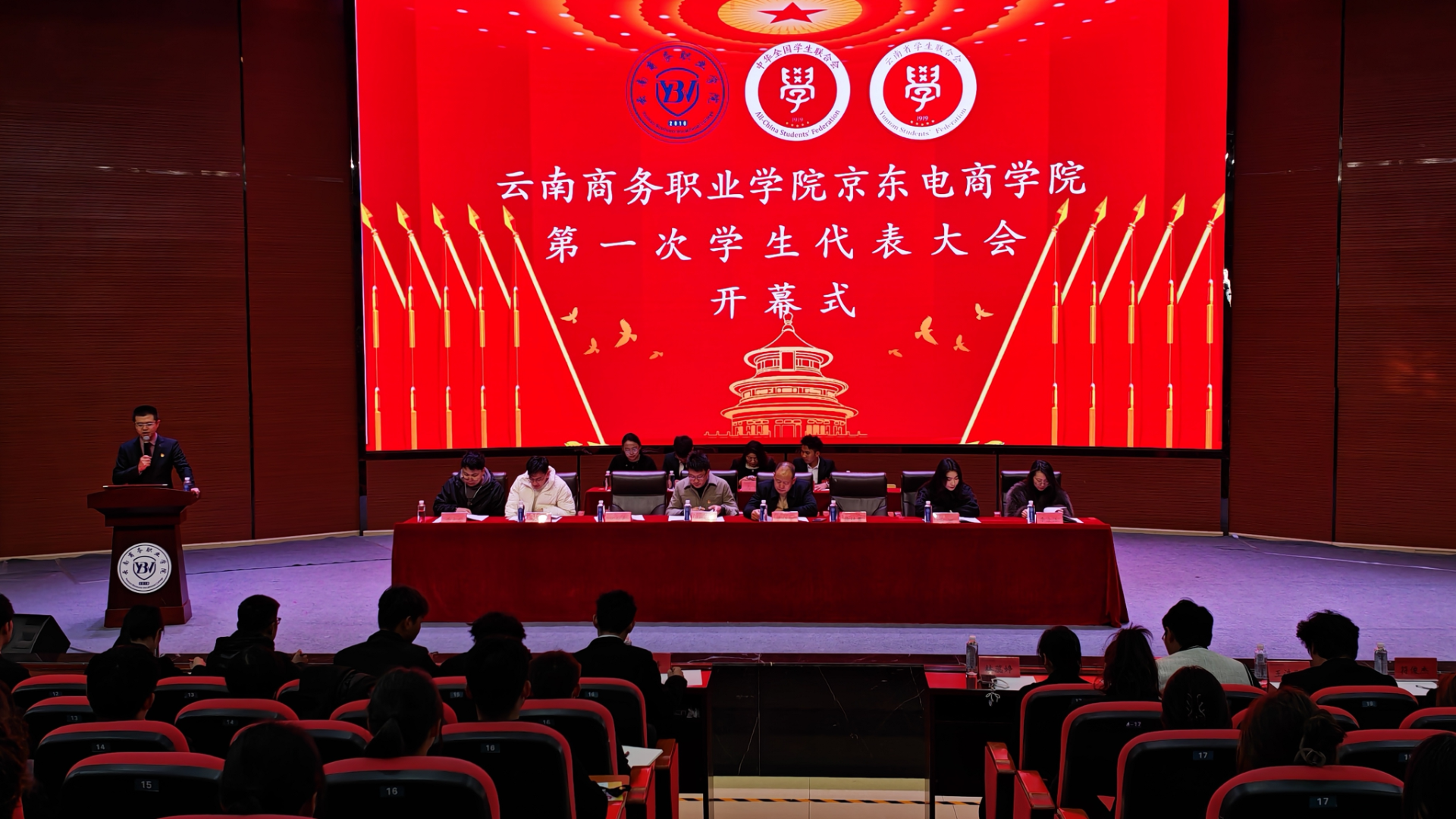 2025年12月15日至16日,云南商务职业学院京东电商学院第一次学生代表大会在学校学生会堂顺利召开。本次大会以“凝聚青春力量,服务学生成长,助力学院发展”为核心,通过民主选举、提案征集、工作报告审议等多项议程,全面总结学院团学工作成果,明确未来发展方向,是学院学生民主政治生活中的重要里程碑。
